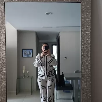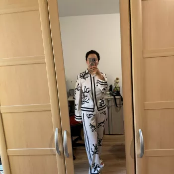 A perfect printing suit, so beautiful, loose and comfortable. The quality is good and the price is good. I am very happy to place an order and receive it. Highly recommended! !